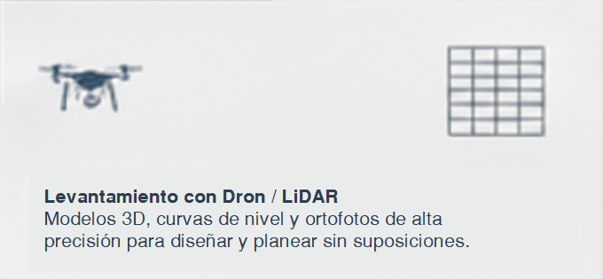 Optimización del terreno y movimientos de tierra Batimetrías Diseño de vías y accesos Gestión catastral y correcciones de área Replanteos de obra de alta precisión Peritajes técnicos y topográficos